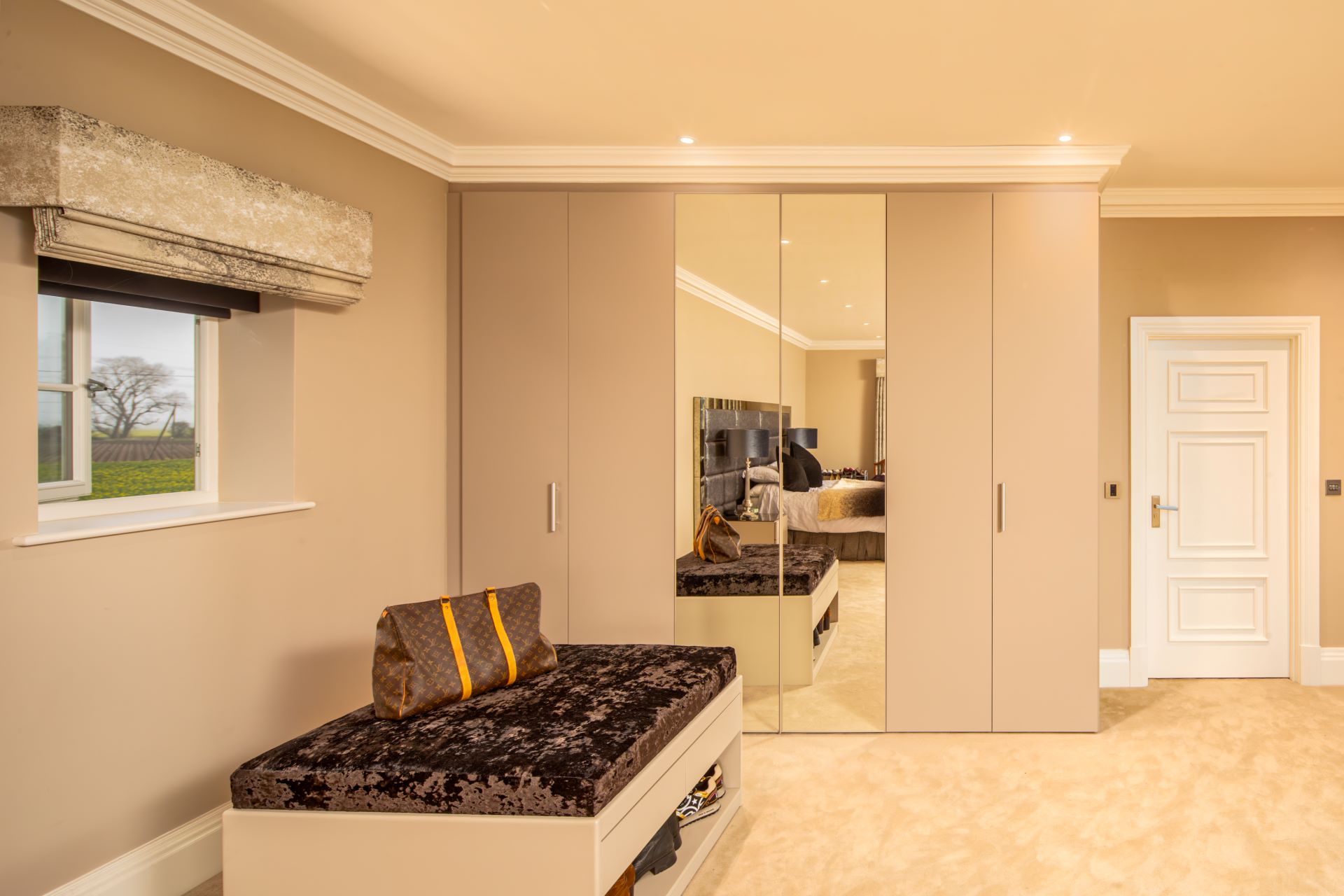 Knottingley Bedroom with Elegant wardrobes and matching sleek dressing table
